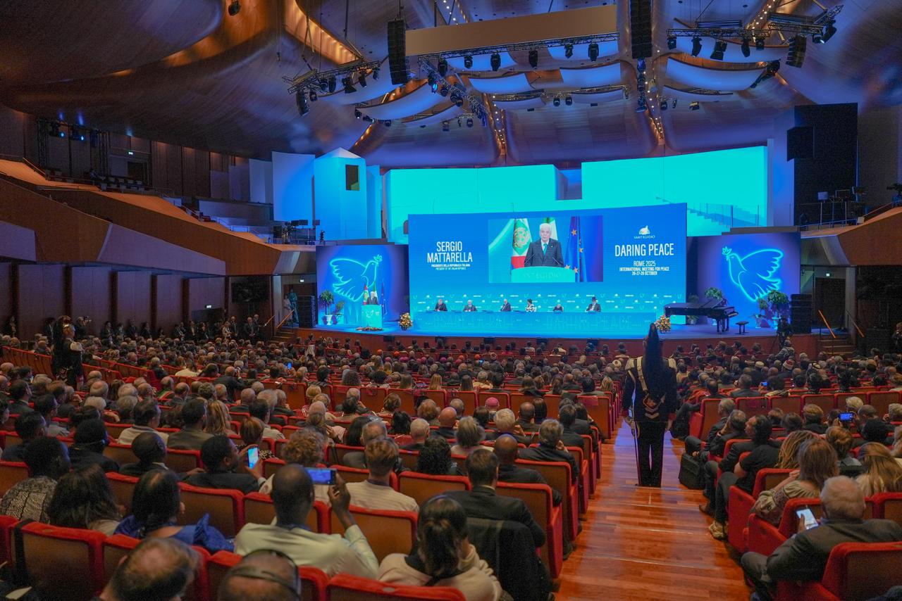 رئيس إيطاليا للمشاركين في المؤتمر العالمي للسلام بروما: أذكِّركم بكلمات الإمام الطيب حول ضرورة رفع راية السلام بدلًا من راية الانتصار، وضرورة التحلِّي بالشجاعة لتحقيق سلام حقيقي.