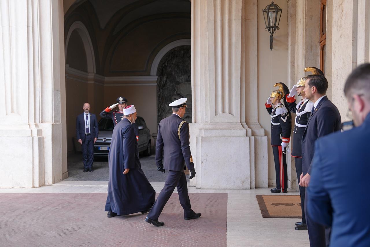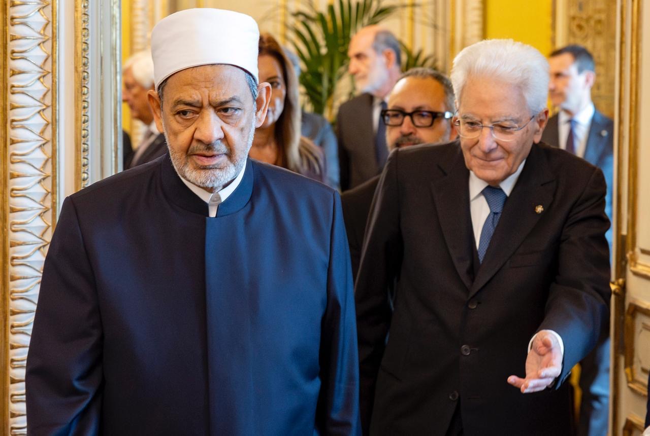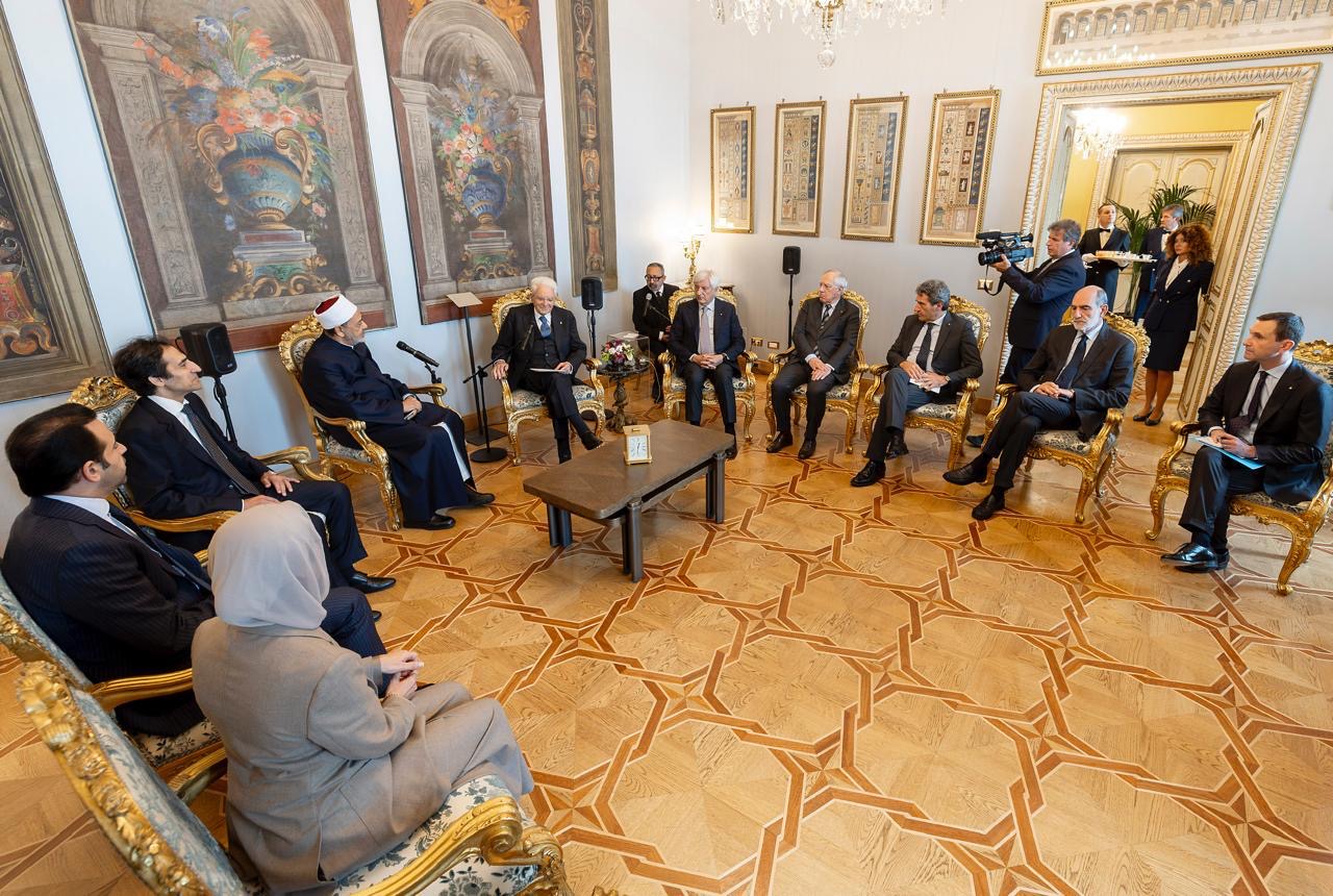 من جانبه، أكَّد الرئيس الإيطالي سيرجيو ماتاريلا تقديره لمواقف شيخ الأزهر رئيس مجلس حكماء المسلمين في نشر قيم السلام والأخوَّة الإنسانيَّة، وإعجابه بعلاقة الصداقة التي جمعت فضيلته بالراحل البابا فرنسيس، مشيدًا بوثيقة الأخوة الإنسانية التي وقَّعها الرمزان الدينيان الكبيران في فبراير 2019 بأبوظبي، مصرحًا: «لقد أثبت الواقع المعاصر الحاجة الماسَّة إلى هذه الوثيقة التي تجاوَزَت حدود المكان، وأصبحت علامةً بارزةً في مجال السَّلام العالمي والحوار بين الأديان».